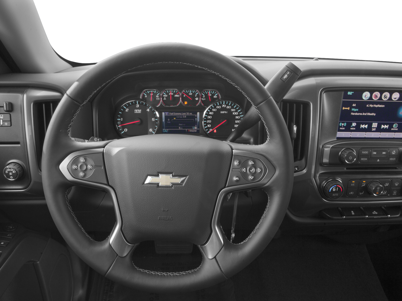 This 2016 Chevrolet Silverado 1500 is equipped with All Star Edition (110-Volt AC Power Outlet, Dual-Zone Automatic Climate Control, Electric Rear-Window Defogger, Rear Vision Camera w/Dynamic Guide Lines, Remote Vehicle Starter System, Theft Deterrent System (Unauthorized Entry), and Thin Profile LED Fog Lamps), Black Pack (LPO) (4 Black Round Assist Steps (LPO), Wheels: 22 5-Spoke Silver (LPO), and Wheels: 22 x 9 Steel Interim (LPO)), Trailering Package (Heavy-Duty Rear Locking Differential), 6-Speed Automatic Electronic with Overdrive, 4WD, Black Cloth, 10-Way Power Driver's Seat Adjuster, 150 Amp Alternator, 4 Movable Upper Cargo Tie Downs, 4-Wheel Disc Brakes, 4.2 Diagonal Color Display Driver Info Center, 40/20/40 Front Split Bench Seat, 6 Speaker Audio System, 6 Speakers, ABS brakes, Air Conditioning, Alloy wheels, AM/FM radio: SiriusXM, Auxiliary External Transmission Oil Cooler, Bluetooth® For Phone, Body Color Bodyside Moldings, Body Color Door Handles, Body-Color Mirror Caps, Body-Color Power Adjustable Heated Outside Mirrors, Bodyside moldings, Brake assist, CD player, Cloth Seat Trim, Color-Keyed Carpeting w/Rubberized Vinyl Floor Mats, Compass, Deep-Tinted Glass, Delay-off headlights, Driver & Front Passenger Illuminated Vanity Mirrors, Driver door bin, Driver vanity mirror, Dual front impact airbags, Dual front side impact airbags, Electronic Stability Control, Emergency communication system: OnStar Guidance, EZ Lift & Lower Tailgate, Front & Rear Black Bowtie Emblems (LPO), Front anti-roll bar, Front Center Armrest w/Storage, Front Chrome Bumper, Front reading lights, Front wheel independent suspension, Fully automatic headlights, HD Radio, Heated door mirrors, Heated Driver & Front Passenger Seats, High-Intensity Discharge Headlights, Illuminated entry, Interior Driver Assist Handle (LPO), Leather Wrapped Steering Wheel w/Cruise Controls, LED Cargo Box Lighting, Low tire pressure warning, Manual Tilt Wheel Steering Column, Manual Tilt/Telescoping Steering Column, Molded Black Splash Guards (LPO), Occupant sensing airbag, OnStar 6 Months Guidance Plan, OnStar w/4G LTE, Outside temperature display, Overhead airbag, Overhead console, Panic alarm, Passenger door bin, Passenger vanity mirror, Power door mirrors, Power steering, Power windows, Power Windows w/Driver Express Up, Premium audio system: Chevrolet MyLink, Radio data system, Radio: AM/FM 8 Diagonal Clr Touch Nav, Radio: AM/FM 8 Diagonal Color Touch Screen, Rear 60/40 Folding Bench Seat (Folds Up), Rear Chrome Bumper, Rear reading lights, Rear seat center armrest, Rear step bumper, Rear Wheelhouse Liners, Remote Keyless Entry, Remote keyless entry, Remote Locking Tailgate, Single Slot CD/MP3 Player, SiriusXM Satellite Radio, Speed control, Speed-sensing steering, Split folding rear seat, Steering Wheel Audio Controls, Steering wheel mounted audio controls, Tachometer, Tilt steering wheel, Traction control, Trip computer, Variably intermittent wipers, and Voltmeter.