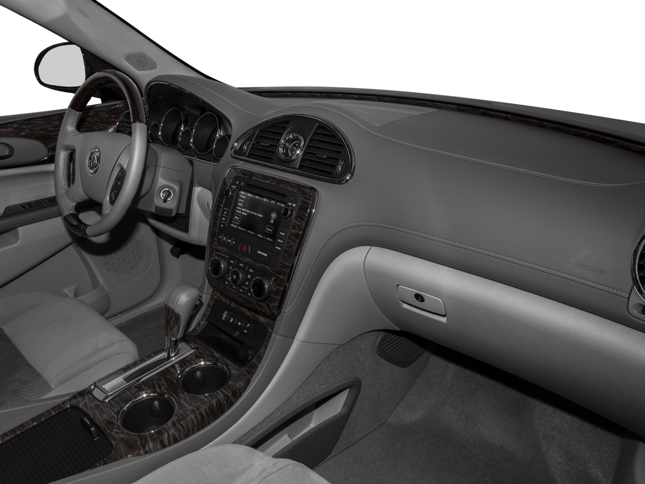 This 2017 Buick Enclave is equipped with Preferred Equipment Group 1SL (8-Way Power Driver Seat Adjuster, 8-Way Power Passenger Seat Adjuster, Heated Driver & Front Passenger Seats, Heated Steering Wheel, Memory Settings, and Side Blind Zone Alert w/Cross Traffic Alert), FWD, 3.16 Axle Ratio, 3rd row seats: split-bench, 4-Wheel Disc Brakes, 6 Speakers, 7-Passenger Seating, ABS brakes, Air Conditioning, Alloy wheels, AM/FM radio: SiriusXM, Auto-dimming Rear-View mirror, Automatic temperature control, Brake assist, Bumpers: body-color, CD player, Compass, Delay-off headlights, Driver door bin, Driver vanity mirror, Dual front impact airbags, Dual front side impact airbags, Electronic Stability Control, Emergency communication system: OnStar Guidance, Exterior Parking Camera Rear, Forward Collision Alert & Lane Departure Warning, Four wheel independent suspension, Front anti-roll bar, Front Bucket Seats, Front Center Armrest w/Storage, Front dual zone A/C, Front License Plate Mounting Bracket, Front reading lights, Fully automatic headlights, Garage door transmitter, Heated door mirrors, Heated front seats, Heated steering wheel, High intensity discharge headlights: Bi-Xenon, Illuminated entry, Leather steering wheel, Low tire pressure warning, Memory seat, Occupant sensing airbag, Outside temperature display, Overhead airbag, Panic alarm, Passenger door bin, Passenger vanity mirror, Perforated Leather-Appointed Seat Trim, Power door mirrors, Power driver seat, Power Liftgate, Power passenger seat, Power steering, Power windows, Radio data system, Radio: Color Touch AM/FM/CD w/IntelliLink, Rear air conditioning, Rear anti-roll bar, Rear Parking Sensors, Rear reading lights, Rear window defroster, Rear window wiper, Remote keyless entry, Roof rack: rails only, Security system, SiriusXM Satellite Radio, Speed control, Speed-sensing steering, Spoiler, Steering wheel mounted audio controls, Tachometer, Telescoping steering wheel, Tilt steering wheel, Traction control, Trip computer, Turn signal indicator mirrors, Variably intermittent wipers, Voltmeter, and Wheels: 19 10-Spoke Aluminum.