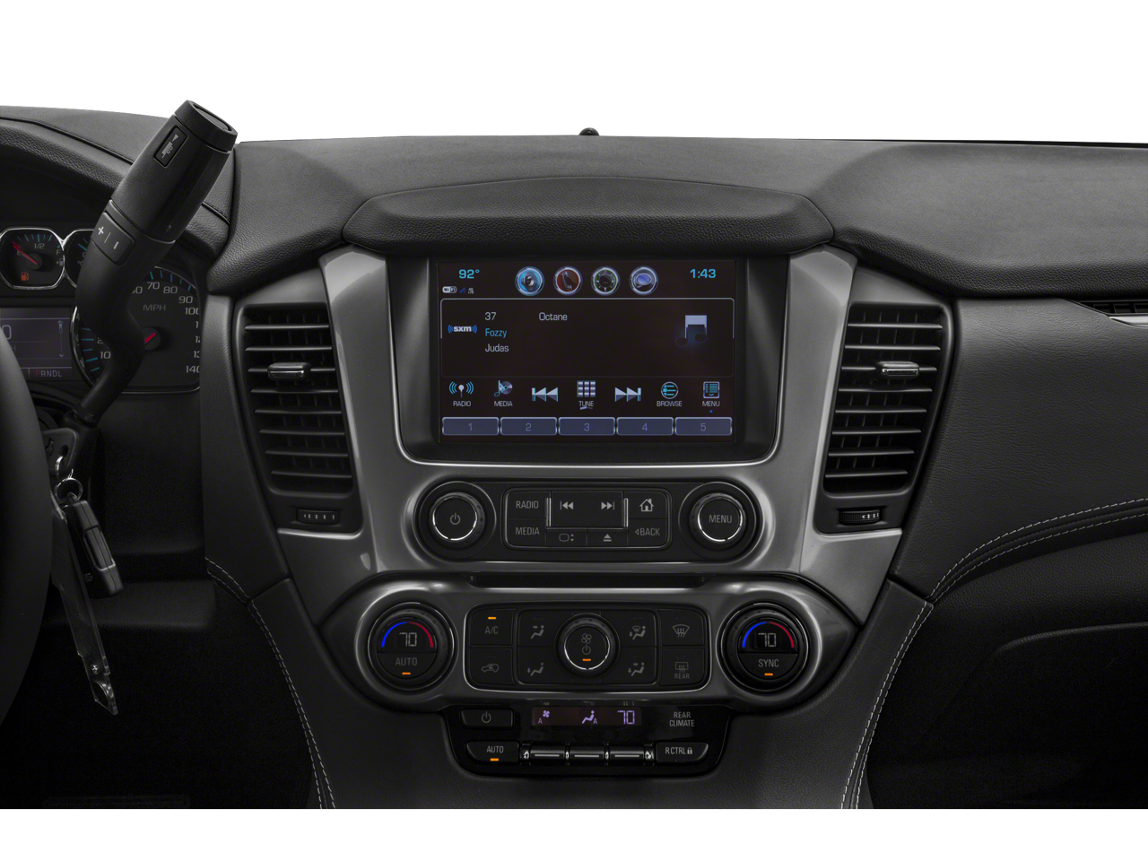 This 2019 Chevrolet Tahoe is equipped with Enhanced Driver Alert Package (Y86) (Forward Collision Alert, IntelliBeam Headlamps, Lane Keep Assist w/Lane Departure Warning, and Low Speed Forward Automatic Braking), Luxury Package (2nd Row Pwr Release 60/40 Split Folding Bench Seat, 3rd Row 60/40 Power Fold Split-Bench, Extended-Range Remote Keyless Entry, Fog Lamps, Front & Rear Park Assist, Hands Free Power Liftgate, Heated 2nd Row Seats, Heated Leather Wrapped Steering Wheel, Lane Change Alert w/Side Blind Zone Alert, Memory Settings, Passive Entry System, Power Tilt & Telescopic Steering Column w/Memory, Power-Folding Heated Outside Mirrors, Push Button Keyless Start, and Rear Cross Traffic Alert), Preferred Equipment Group 1LT (1st & 2nd Row Color-Keyed Carpeted Floor Mats, 2nd Row 60/40 Split-Folding Manual Bench, 3rd Row Manual 60/40 Split-Folding Fold Flat Bench, 4-Wheel Antilock Disc Brakes w/Brake Assist, 5 12-Volt Auxiliary Power Outlets, Auto-Dimming Inside Rear-View Mirror, Black Assist Steps, Bose Premium 9-Speaker System, Cargo Net, Color-Keyed Carpeting Floor Covering, Driver Inboard & Front Passenger Airbags, Electronic Cruise Control w/Set & Resume Speed, Floor Console, Front Passenger 6-Way Power Seat Adjuster, Leather-Wrapped Steering Wheel, Power Liftgate, Power-Adjustable Accelerator & Brake Pedals, Rear Park Assist w/Audible Warning, Remote Vehicle Start, Roof-Mounted Luggage Rack Side Rails, SiriusXM Radio, and Universal Home Remote), Premium Smooth Ride Suspension Package, Sun, Entertainment & Destinations Package (Bluetooth® For Phone, HD Radio, Power Sunroof, Radio: Chevrolet Infotainment AM/FM Stereo w/Nav, Rear Seat Blu-Ray/DVD Entertainment System, Single-Slot CD/MP3 Player, and SiriusXM NavTraffic), Jet Black/Dark Ash Leather, 18 x 8.5 Aluminum Wheels, 3.08 Rear Axle Ratio, 3rd row seats: split-bench, 4-Wheel Disc Brakes, 9 Speakers, ABS brakes, Adjustable pedals, Air Conditioning, Alloy wheels, AM/FM radio: SiriusXM, Apple CarPlay/Android Auto, Auto High-beam Headlights, Auto-dimming Rear-View mirror, Automatic temperature control, Brake assist, Bumpers: body-color, CD player, Compass, Delay-off headlights, Driver door bin, Driver vanity mirror, Dual front impact airbags, Dual front side impact airbags, Electronic Stability Control, Emergency communication system: OnStar and Chevrolet connected services capable, Exterior Parking Camera Rear, Front anti-roll bar, Front Bucket Seats, Front Center Armrest, Front dual zone A/C, Front Heated Reclining Bucket Seats, Front reading lights, Front wheel independent suspension, Fully automatic headlights, Garage door transmitter, Heated door mirrors, Heated front seats, Illuminated entry, Leather-Appointed Seat Trim, Low tire pressure warning, Memory seat, Occupant sensing airbag, Outside temperature display, Overhead airbag, Overhead console, Panic alarm, Passenger door bin, Passenger vanity mirror, Pedal memory, Power door mirrors, Power driver seat, Power passenger seat, Power steering, Power windows, Premium audio system: Chevrolet MyLink, Radio: Chevrolet Infotainment AM/FM Stereo, Rain sensing wipers, Rear air conditioning, Rear anti-roll bar, Rear reading lights, Rear seat center armrest, Rear window defroster, Rear window wiper, Remote keyless entry, Roof rack: rails only, Security system, Speed control, Speed-sensing steering, Split folding rear seat, Spoiler, Steering wheel mounted audio controls, Tachometer, Telescoping steering wheel, Tilt steering wheel, Traction control, Trip computer, Variably intermittent wipers, and Voltmeter.