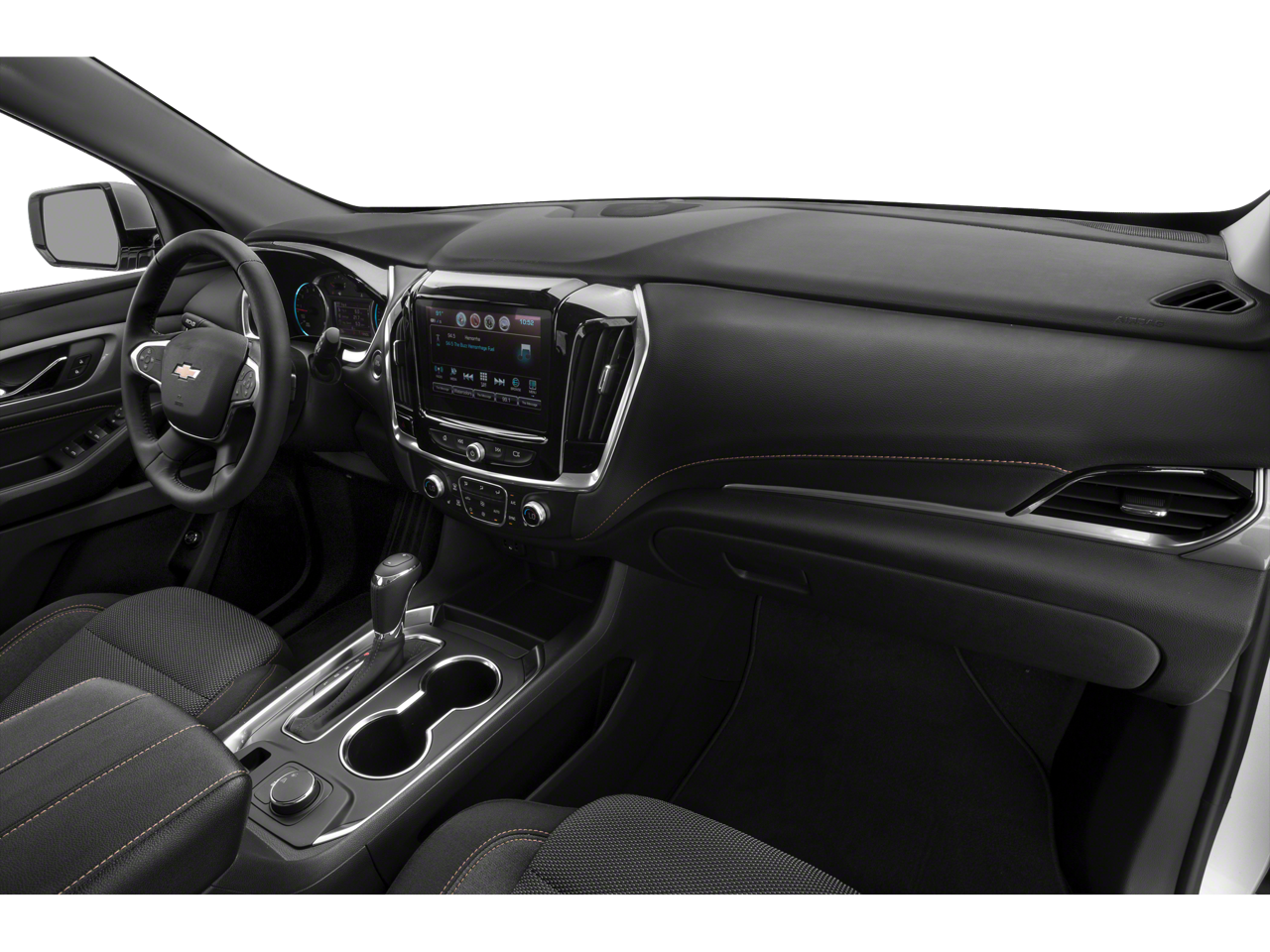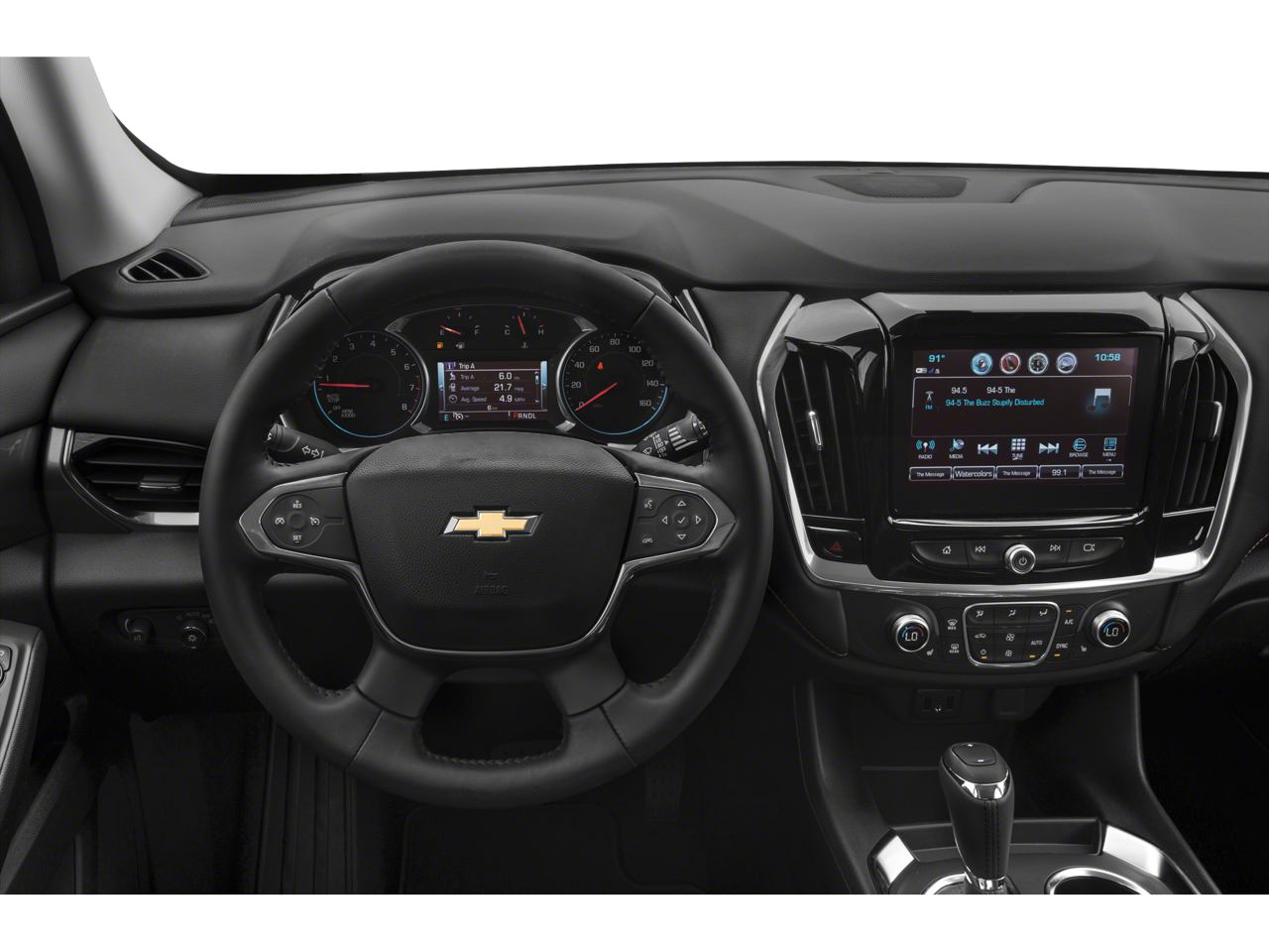 This 2020 Chevrolet Traverse is equipped with Front License Plate Bracket Mounting Package, LT Premium Package (120-Volt Power Outlet, Bose Premium 10-Speaker Audio System Feature, HD Surround Vision, Radio: Chevrolet Infotainment 3 Premium System, Rear Camera Mirror, and Wheels: 20 Machined Face Aluminum), Preferred Equipment Group 3LT, 3.49 Axle Ratio, 3rd row seats: split-bench, 4-Wheel Disc Brakes, 6 Speakers, 7-Passenger Seating (2-2-3 Seating Configuration), ABS brakes, Air Conditioning, Alloy wheels, AM/FM radio: SiriusXM, Apple CarPlay/Android Auto, Automatic temperature control, Brake assist, Bumpers: body-color, Compass, Delay-off headlights, Driver door bin, Driver vanity mirror, Dual front impact airbags, Dual front side impact airbags, Electronic Stability Control, Emergency communication system: OnStar and Chevrolet connected services capable, Four wheel independent suspension, Front anti-roll bar, Front Bucket Seats, Front Center Armrest, Front dual zone A/C, Front fog lights, Front reading lights, Fully automatic headlights, Garage door transmitter, Heated door mirrors, Heated front seats, High-Intensity Discharge Headlights, Illuminated entry, Leather steering wheel, Leather-Appointed Seat Trim, Low tire pressure warning, Occupant sensing airbag, Outside temperature display, Overhead airbag, Overhead console, Panic alarm, Passenger door bin, Passenger vanity mirror, Power door mirrors, Power driver seat, Power Liftgate, Power passenger seat, Power steering, Power windows, Premium audio system: Chevrolet MyLink, Radio data system, Radio: Chevrolet Infotainment 3 Plus System, Rear air conditioning, Rear anti-roll bar, Rear reading lights, Rear window defroster, Rear window wiper, Remote keyless entry, Roof rack: rails only, Security system, SiriusXM w/360L, Speed control, Speed-sensing steering, Spoiler, Steering wheel mounted audio controls, Tachometer, Telescoping steering wheel, Tilt steering wheel, Traction control, Trip computer, Turn signal indicator mirrors, Variably intermittent wipers, Voltmeter, and Wheels: 18 Bright Silver Painted Aluminum.