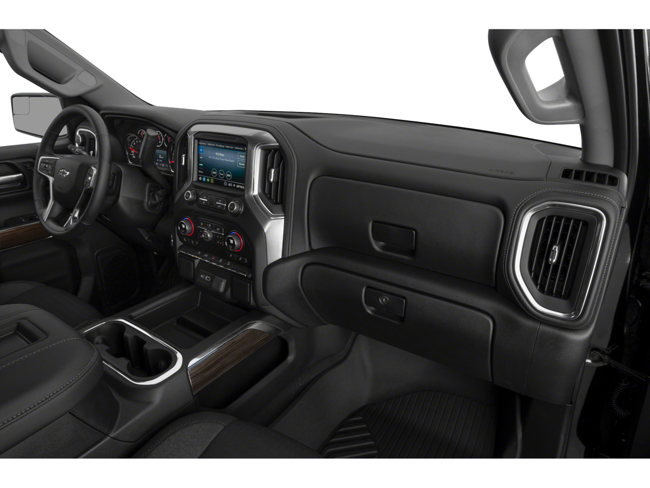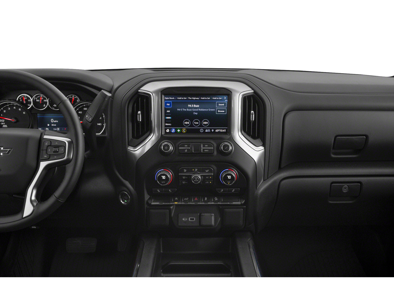 This 2021 Chevrolet Silverado 1500 is equipped with Bed Protection Package (Chevytec Spray-On Black Bedliner and Rear Wheelhouse Liners), Cloth Rear Seat w/Storage Package, Convenience Package w/Buckets Seats (10-Way Power Driver Seat w/Lumbar, Dual-Zone Automatic Climate Control, Floor Mounted Center Console, Heated Driver & Front Outboard Passenger Seats, Heated Steering Wheel, and Manual Tilt/Telescoping Steering Column), Dark Essentials Package (LPO) (Black Name Plates (LPO)), Preferred Equipment Group 2LT (12-Volt Rear Auxiliary Power Outlet, 170 Amp Alternator, 2 USB Ports (First Row), 4.2 Diagonal Color Display Driver Info Center, 4G LTE Wi-Fi Hot Spot Capable, 6-Speaker Audio System, All-Weather Floor Liner (LPO) (AAK), Auto-Locking Rear Differential, Auxiliary External Transmission Oil Cooler, Bluetooth® For Phone, Chevrolet Connected Access Capable, Color-Keyed Carpeting Floor Covering, Compass, Deep-Tinted Glass, Dual Exhaust w/Polished Outlets, Electric Rear-Window Defogger, Electrical Lock Control Steering Column, Electronic Cruise Control, EZ Lift Power Lock & Release Tailgate, Front LED Fog Lamps, High Gloss Black Grille, High Gloss Black Mirror Caps, Keyless Open & Start, Leather Wrapped Steering Wheel, LED Cargo Area Lighting, LED Reflector Headlamps, OnStar & Chevrolet Connected Services Capable, Performance Red Recovery Hooks, Power Door Locks, Power Front Windows w/Driver Express Up/Down, Power Front Windows w/Passenger Express Down, Power Rear Windows w/Express Down, Rear Dual USB Charging-Only Ports, Rear Vision Camera, Remote Vehicle Starter System, SiriusXM Radio, Standard Tailgate, Steering Wheel Audio Controls, and Theft Deterrent System (Unauthorized Entry)), Suspension Package (Heavy-Duty Air Filter and Hill Descent Control), Trailering Package (Hitch Guidance), 10-Speed Automatic, 4WD, Gideon/Very Dark Atmosphere Cloth, 3.23 Rear Axle Ratio, 4-Wheel Disc Brakes, 6 Speakers, ABS brakes, Air Conditioning, Alloy wheels, AM/FM radio: SiriusXM, Apple CarPlay/Android Aut