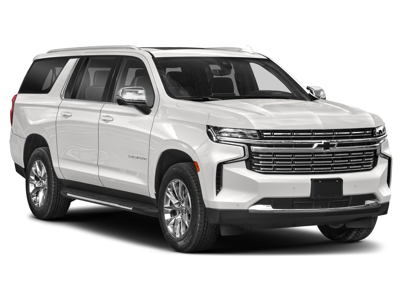 This 2021 Chevrolet Suburban is equipped with License Plate Front Mounting Package, Preferred Equipment Group 1LZ (12-Way Power Driver & Passenger Seat Adjusters, 1st & 2nd Row Color-Keyed Carpeted Floor Mats, 2 USB Data Ports, 3rd Row 60/40 Power-Folding Split-Bench, Auto-Dimming Inside Rear-View Mirror, Automatic Heated Steering Wheel, Bose 10-Speaker Surround w/CenterPoint, Bright Front & Rear Door Sill Plates, Chrome Door Handles w/Body-Color Strip, Chrome Mirror Caps, Color-Keyed Carpeting Floor Covering, Driver & Front Outboard Passenger Airbags, Dual Exhaust System, Enhanced Driver Information Center, Floor Console w/Storage Area, Front & Rear Park Assist, Hands-Free Rear Power Programmable Liftgate, HD Radio, Heated & Ventilated Driver & Front Passenger Seats, Heated 2nd Row Outboard Seats, Heated Driver & Front Passenger Seats, Infotainment Display, Lane Change Alert w/Side Blind Zone Alert, Lane Keep Assist w/Lane Departure Warning, Leather-Wrapped Steering Wheel, LED Daytime Running Lamps, Memory Settings, Outside Heated Power-Adjustable Mirrors, Power Release 2nd Row Bucket Seats, Power Tilt & Telescopic Steering Column, Rear Cross Traffic Alert, Remote Start, Safety Alert Seat, SiriusXM Radio w/360L, and Universal Home Remote), Navigation System, 10 Speakers, 20 x 9 Polished Aluminum Wheels, 3.23 Rear Axle Ratio, 3rd row seats: split-bench, 4-Wheel Disc Brakes, ABS brakes, Adaptive suspension, Air Conditioning, Alloy wheels, AM/FM radio: SiriusXM with 360L, Apple CarPlay/Android Auto, Auto High-beam Headlights, Auto-dimming door mirrors, Auto-dimming Rear-View mirror, Auto-leveling suspension, Automatic temperature control, Brake assist, Bumpers: body-color, Compass, Delay-off headlights, Driver door bin, Driver vanity mirror, Dual front impact airbags, Dual front side impact airbags, Electronic Stability Control, Emergency communication system: OnStar and Chevrolet connected services capable, Four wheel independent suspension, Front anti-roll bar, Front Bucket Seats, Front Center Armrest, Front dual zone A/C, Front reading lights, Fully automatic headlights, Garage door transmitter, Heated door mirrors, Heated front seats, Heated rear seats, Heated steering wheel, Illuminated entry, Leather steering wheel, Low tire pressure warning, Magnetic Ride Control Suspension, Memory seat, Occupant sensing airbag, Outside temperature display, Overhead airbag, Overhead console, Panic alarm, Passenger door bin, Passenger vanity mirror, Perforated Leather Seating Surfaces, Power door mirrors, Power driver seat, Power Liftgate, Power passenger seat, Power steering, Power windows, Premium audio system: Chevrolet Infotainment 3 Premium, Radio: Chevrolet Infotainment 3 Premium System, Rain sensing wipers, Rear air conditioning, Rear anti-roll bar, Rear reading lights, Rear window defroster, Rear window wiper, Remote keyless entry, Roof rack: rails only, Security system, Speed control, Speed-sensing steering, Split folding rear seat, Spoiler, Steering wheel memory, Steering wheel mounted audio controls, Tachometer, Telescoping steering wheel, Tilt steering wheel, Traction control, Trip computer, Turn signal indicator mirrors, Variably intermittent wipers, Ventilated front seats, Voltmeter, Wheel Locks (Set of 4) (LPO), and Wheels: 22 x 9 Polished Aluminum.