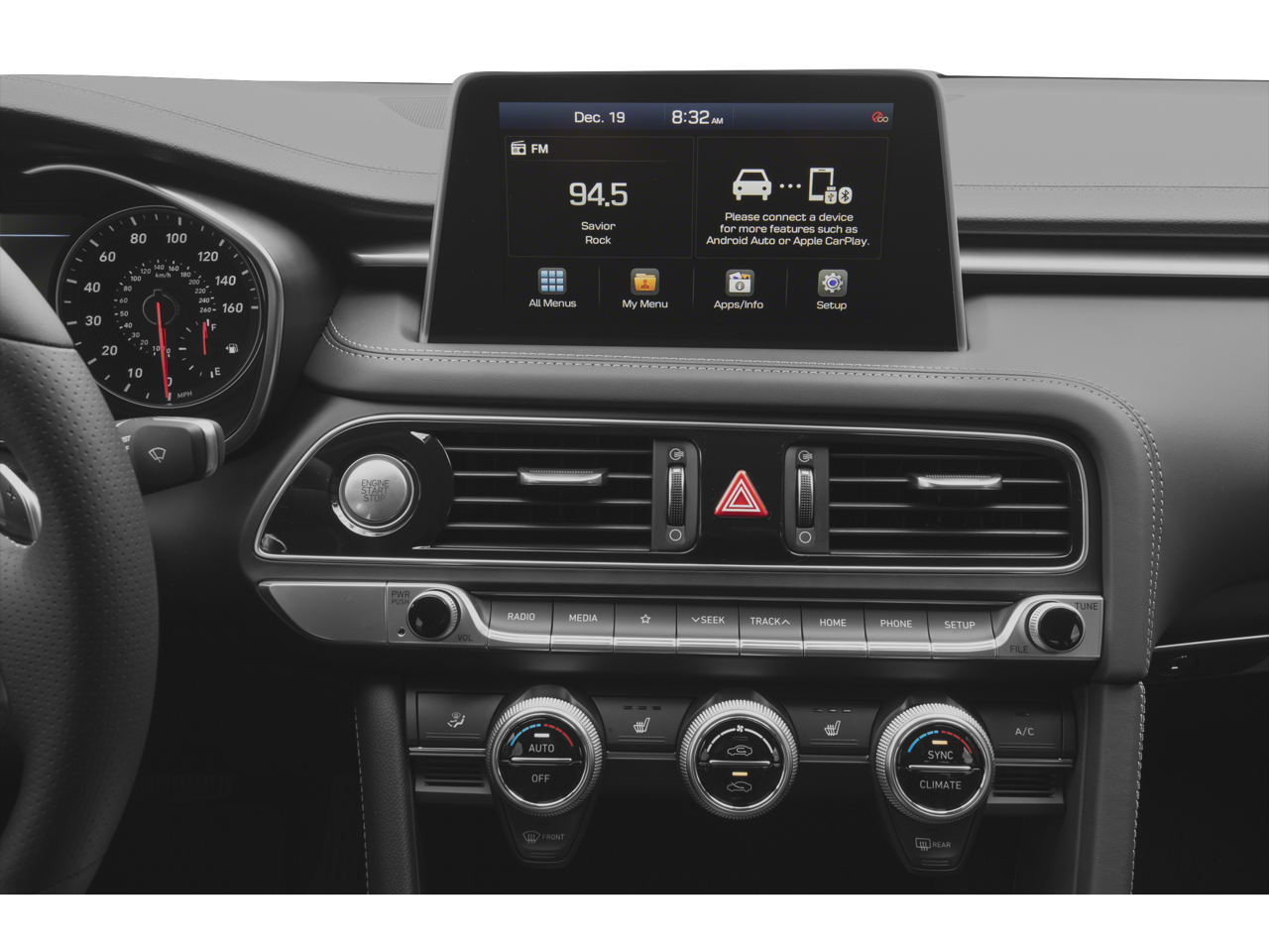 This 2021 Genesis G70 is equipped with Option Group 02 w/Prestige Package (12-Way Power Passenger Seat w/4-Way Power Lumbar, 14-Way Power Driver Seat w/ Cushion Extension, Door & Console Aluminum Trim, Forward/Reverse Parking Distance Warning, Front Passenger Seat Walk-In Device, Genesis Logo Approach Lights, Heated Front Seats, Integrated Memory System (IMS), Integrated Navigation System, Power Folding Auto-Dimming Outside Mirrors, Power Tilt & Telescopic Steering Wheel, Radio: AM/FM/SiriusXM/HD Radio Lexicon Audio Sys, and Wide Sunroof), Prestige Package (4-Way Power Lumbar Front Passenger Seat, Heads-Up Display (HUD), Heated Rear Seats, Heated Steering Wheel, Low Beam Assist (LBA), Microfiber Suede Headliner, Nappa Leather Seating Surfaces w/Luxury Quilting, Option Group 03, Power Driver Seat Cushion Extension, Rain-Sensing Wipers, Surround View Monitor (SVM), Ventilated Front Seats, Wheels: 19 x 8.0J Fr & 19 x 8.5J Rr Alloy, and Wireless Charging Pad), 4-Wheel Disc Brakes, 6 Speakers, ABS brakes, Air Conditioning, Alloy wheels, AM/FM radio: SiriusXM, Android Auto & Apple CarPlay, Anti-whiplash front head restraints, Auto High-beam Headlights, Auto-dimming Rear-View mirror, Automatic temperature control, Brake assist, Bumpers: body-color, Delay-off headlights, Driver door bin, Driver vanity mirror, Dual front impact airbags, Dual front side impact airbags, Electronic Stability Control, Emergency communication system: Genesis Connected Services, Exterior Parking Camera Rear, Four wheel independent suspension, Front anti-roll bar, Front Bucket Seats, Front Center Armrest, Front dual zone A/C, Front reading lights, Fully automatic headlights, Garage door transmitter: HomeLink, Heated door mirrors, Illuminated Door Scuff Plates, Illuminated entry, Knee airbag, Leatherette Seating Surfaces, Low tire pressure warning, Multi-Adjustable Front Bucket Seats, Occupant sensing airbag, Outside temperature display, Overhead airbag, Overhead console, Panic alarm, Passenger door bin, Passenger vanity mirror, Power door mirrors, Power driver seat, Power passenger seat, Power steering, Power windows, Premium First Aid Kit, Radio: AM/FM/SiriusXM/HD Audio System, Rear anti-roll bar, Rear Bumper Applique, Rear Mud Guards, Rear reading lights, Rear seat center armrest, Rear window defroster, Remote keyless entry, Reversible Cargo Tray, Security system, Speed control, Speed-Sensitive Wipers, Split folding rear seat, Steering wheel mounted audio controls, Tachometer, Telescoping steering wheel, Tilt steering wheel, Traction control, Trip computer, Turn signal indicator mirrors, Variably intermittent wipers, and Wheels: 18 x 8.0J Alloy w/Bright Finish.
