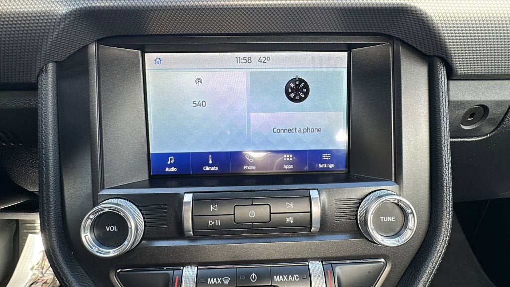 This 2022 Ford Mustang is equipped with Black Accent Package (Black Decklid Spoiler, Black Grille, Black GT, 5.0 & Pony Badges, Black Mirror Caps, Painted Black Roof, and Wheels: 19 x 8.5 Ebony Black-Painted Aluminum), Black Accent Package w/Shadow Black Paint, Equipment Group 301A (AM/FM Stereo w/MP3 Player, Ambient Lighting w/MyColor, Dual-Zone Automatic Temperature Control, Illuminated Door-Sill Scuff Plates, Selectable Drive Modes w/Toggle Switches, SiriusXM Radio, and SYNC 3 Communications & Entertainment System), 4-Wheel Disc Brakes, ABS brakes, Active Valve Performance Exhaust, Air Conditioning, Alloy wheels, AM/FM Stereo, Auto High-beam Headlights, Auto-dimming Rear-View mirror, Brake assist, Bumpers: body-color, Compass, Delay-off headlights, Driver door bin, Driver vanity mirror, Dual front impact airbags, Dual front side impact airbags, Electronic Stability Control, Emergency communication system: 911 Assist, Exterior Parking Camera Rear, Four wheel independent suspension, Front anti-roll bar, Front Bucket Seats, Front Center Armrest, Front fog lights, Front reading lights, Fully automatic headlights, Illuminated entry, Knee airbag, Leather Shift Knob, Low tire pressure warning, Occupant sensing airbag, Outside temperature display, Overhead airbag, Overhead console, Panic alarm, Passenger door bin, Passenger vanity mirror, Power door mirrors, Power driver seat, Power passenger seat, Power steering, Power windows, Radio data system, Rain sensing wipers, Rear anti-roll bar, Rear Parking Sensors, Rear window defroster, Remote keyless entry, Security system, Speed control, Speed-sensing steering, Speed-Sensitive Wipers, Split folding rear seat, Spoiler, Steering wheel mounted audio controls, Tachometer, Telescoping steering wheel, Tilt steering wheel, Traction control, Trip computer, Variably intermittent wipers, Voltmeter, and Wheels: 18 x 8 Machined-Face Aluminum.