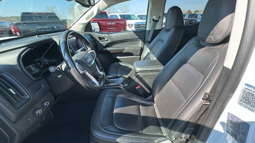 This 2022 GMC Canyon is equipped with Elevation Premium Package (Heated Driver & Front Passenger Seats, Heated Steering Wheel, Leather-Appointed Seat Trim, and Power Driver Lumbar Control Seat Adjuster), Preferred Equipment Group 4LE (Hitch Guidance and Tow/Haul Mode), Trailering Package, GMC Certified Pre-Owned Certified, 4WD, 3.42 Rear Axle Ratio, 4-Wheel Disc Brakes, 6 Speakers, 6-Speaker Audio System Feature, ABS brakes, Air Conditioning, Alloy wheels, AM/FM radio: SiriusXM, Apple CarPlay/Android Auto, Auto-dimming Rear-View mirror, Automatic temperature control, Bumpers: body-color, Cloth Seat Trim, Compass, Delay-off headlights, Driver 6-Way Power Seat Adjuster, Driver door bin, Driver vanity mirror, Dual front impact airbags, Dual front side impact airbags, Electronic Stability Control, Emergency communication system: OnStar and GMC Connected Services capable, Exterior Parking Camera Rear, Front anti-roll bar, Front Bucket Seats, Front Center Armrest, Front fog lights, Front reading lights, Front wheel independent suspension, Fully automatic headlights, Heated door mirrors, Illuminated entry, Low tire pressure warning, Not Equipped w/Front Heated or Ventilated Seats, Occupant sensing airbag, Outside temperature display, Overhead airbag, Overhead console, Panic alarm, Passenger door bin, Passenger vanity mirror, Power door mirrors, Power driver seat, Power steering, Power windows, Premium audio system: GMC Infotainment System, Radio data system, Radio: AM/FM w/8 Diagonal Color Touch-Screen, Rear reading lights, Rear seat center armrest, Rear step bumper, Rear window defroster, Remote keyless entry, Security system, SiriusXM Radio, Speed control, Speed-sensing steering, Steering wheel mounted audio controls, Tachometer, Telescoping steering wheel, Tilt steering wheel, Traction control, Trip computer, Variably intermittent wipers, and Wheels: 18 x 8.5 Black Painted Aluminum. Recent Arrival!