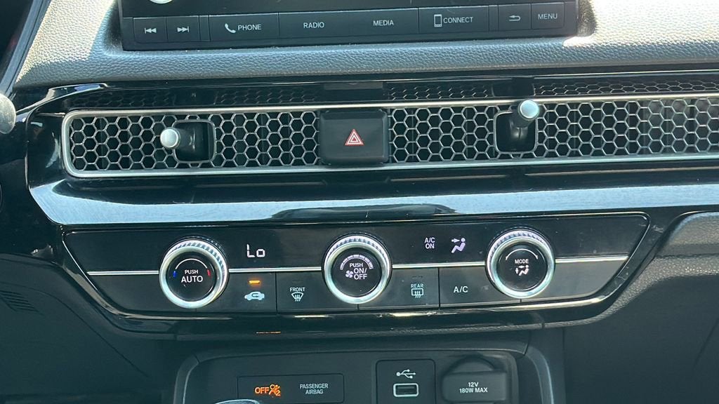 This 2022 Honda Civic is equipped with Gray Cloth, 4-Wheel Disc Brakes, 8 Speakers, ABS brakes, Adaptive Cruise Control: Adaptive Cruise Control (ACC) with Low-Speed Follow, Air Conditioning, Alloy wheels, AM/FM radio, Apple CarPlay/Android Auto, Auto High-beam Headlights, Automatic temperature control, Brake assist, Bumpers: body-color, Cloth Seat Trim, Delay-off headlights, Driver door bin, Driver vanity mirror, Dual front impact airbags, Dual front side impact airbags, Electronic Stability Control, Emergency communication system: HondaLink, Exterior Parking Camera Rear, Forward collision: Collision Mitigation Braking System (CMBS) + FCW mitigation, Four wheel independent suspension, Front anti-roll bar, Front Bucket Seats, Front Center Armrest, Front reading lights, Fully automatic headlights, Illuminated entry, Knee airbag, Leather Shift Knob, Leather steering wheel, Low tire pressure warning, Occupant sensing airbag, Outside temperature display, Overhead airbag, Panic alarm, Passenger door bin, Passenger vanity mirror, Power door mirrors, Power steering, Power windows, Radio data system, Radio: 180-Watt AM/FM Audio System, Rear anti-roll bar, Rear side impact airbag, Rear window defroster, Remote keyless entry, Security system, Speed control, Speed-sensing steering, Steering wheel mounted audio controls, Tachometer, Telescoping steering wheel, Tilt steering wheel, Traction control, Trip computer, and Wheels: 18 Gloss Black Alloy. 30/37 City/Highway MPG
