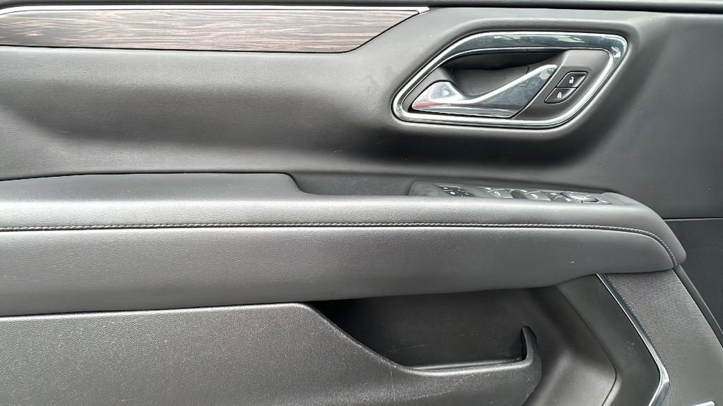 This 2023 Chevrolet Tahoe is equipped with Driver Alert Package (Lane Change Alert w/Side Blind Zone Alert and Rear Cross Traffic Alert), Luxury Package (2nd Row Pwr Release 60/40 Split-Folding Bench Seat, 3rd Row 60/40 Power-Folding Split-Bench Seat, HD Surround Vision, Heated 2nd Row Outboard Seats, Heated Steering Wheel, Memory Settings, Outside Heated Power-Adjustable Mirrors, Power Tilt & Telescopic Steering Column, and Rear Pedestrian Alert), Preferred Equipment Group 2Z7 (1st & 2nd Row Color-Keyed Carpeted Floor Mats, 2-Speed Active Electronic AutoTrac Transfer Case, Auto-Dimming Inside Rear-View Mirror, Black Tubular Assist Steps, Bose 9-Speaker Stereo Audio System Feature, Bright Front & Rear Door Sill Plates, Color-Keyed Carpeting Floor Covering, Driver & Front Outboard Passenger Airbags, Enhanced Driver Information Center, Floor Console w/Storage Area, Front High-Approach Angle Fascia, Hands-Free Rear Power Programmable Liftgate, Hill Descent Control, Infotainment Display, LED Daytime Running Lamps, Memory Settings for Driver, Red Horizontal-Mounted Recovery Hooks, Remote Start, SiriusXM Radio w/360L, Universal Home Remote, Wireless Charging, and Wrapped Steering Wheel), 4WD, Black Leather, Navigation System, 10-Way Power Driver & Passenger Seat Adjusters, 3.23 Rear Axle Ratio, 3rd row seats: split-bench, 4-Wheel Disc Brakes, 9 Speakers, ABS brakes, Air Conditioning, Alloy wheels, AM/FM radio: SiriusXM with 360L, Apple CarPlay/Android Auto, Auto High-beam Headlights, Auto-dimming Rear-View mirror, Automatic temperature control, Brake assist, Bumpers: body-color, Compass, Delay-off headlights, Driver door bin, Driver vanity mirror, Dual front impact airbags, Dual front side impact airbags, Dual-Pane Power Panoramic Sunroof, Electronic Stability Control, Emergency communication system: OnStar and Chevrolet connected services capable, Four wheel independent suspension, Front anti-roll bar, Front Bucket Seats, Front Center Armrest, Front dual zone A/C, Front High-Back Reclining Bucket Seats, Front reading lights, Fully automatic headlights, Garage door transmitter, Heated door mirrors, Heated Driver & Front Passenger Seats, Heated front seats, Illuminated entry, Leather-Appointed Seat Trim, Low tire pressure warning, Memory seat, Occupant sensing airbag, Outside temperature display, Overhead airbag, Overhead console, Panic alarm, Passenger door bin, Passenger vanity mirror, Power door mirrors, Power driver seat, Power Liftgate, Power passenger seat, Power Release 2nd Row Bucket Seats, Power steering, Power windows, Premium audio system: Chevrolet Infotainment 3 Premium, Premium Smooth Ride Suspension, Radio: Chevrolet Infotainment 3 Premium System, Rain sensing wipers, Rear air conditioning, Rear anti-roll bar, Rear reading lights, Rear seat center armrest, Rear window defroster, Rear window wiper, Remote keyless entry, Roof rack: rails only, Security system, Speed control, Speed-sensing steering, Split folding rear seat, Spoiler, Steering wheel mounted audio controls, Tachometer, Telescoping steering wheel, Tilt steering wheel, Traction control, Trip computer, Variably intermittent wipers, Voltmeter, and Wheels: 20 x 9 Machined Aluminum.