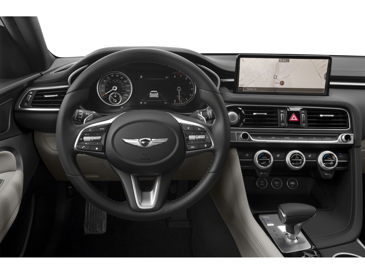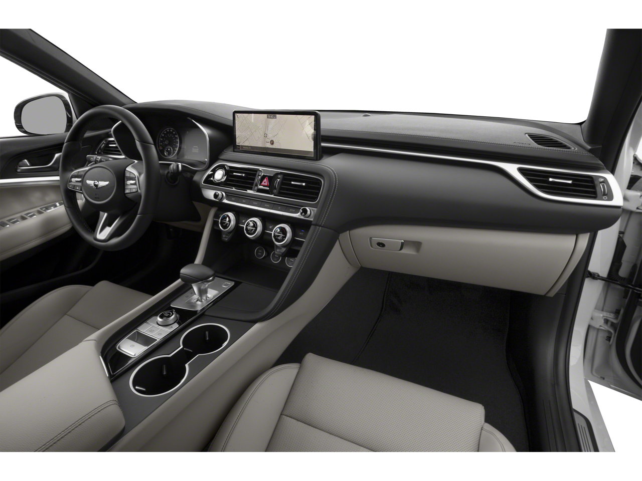 This 2023 Genesis G70 is equipped with Sport Prestige Package (4-Way Power Lumbar Front Passenger Seat, Acoustic Front Door Glass, Alloy Pedals, Dark Chrome Grille & Daylight Opening Trim, Forward & Reverse Parking Distance Warning, Front Passenger Seat Walk-In Device, Integrated Memory System (IMS), Leather Seating Surfaces, Option Group 02, Power Folding ECM Outside Mirrors, Power Telescoping Steering Wheel, Radio: AM/FM/SiriusXM/HD Lexicon Prem Audio System, Rain-Sensing Wipers, Sport Aluminum Trim, Ventilated Front Seats, Wheels: 19 x 8.0J Fr & 19 x 8.5J Rr Sport Alloy, Wide Sunroof, and Wireless Device Charging), Genesis Certified Certified, Navigation System, 4-Wheel Disc Brakes, 6 Speakers, ABS brakes, Air Conditioning, Alloy wheels, AM/FM radio: SiriusXM, Android Auto & Apple CarPlay, Anti-whiplash front head restraints, Auto High-beam Headlights, Auto-dimming Rear-View mirror, Automatic temperature control, Brake assist, Bumper Applique, Bumpers: body-color, Delay-off headlights, Driver door bin, Driver vanity mirror, Dual front impact airbags, Dual front side impact airbags, Electronic Stability Control, Emergency communication system: Genesis Connected Services, Exterior Parking Camera Rear, Four wheel independent suspension, Front anti-roll bar, Front Bucket Seats, Front Center Armrest, Front dual zone A/C, Front reading lights, Fully automatic headlights, Garage door transmitter: HomeLink, Heated door mirrors, Heated front seats, Heated Multi-Adjustable Front Bucket Seats, Illuminated entry, Knee airbag, Leatherette Seating Surfaces, Low tire pressure warning, Occupant sensing airbag, Outside temperature display, Overhead airbag, Overhead console, Panic alarm, Passenger door bin, Passenger vanity mirror, Power door mirrors, Power driver seat, Power passenger seat, Power steering, Power windows, Premium First Aid Kit, Radio: AM/FM/SiriusXM/HD Audio System, Rear anti-roll bar, Rear reading lights, Rear seat center armrest, Rear window defroster, Remote keyless entry, Security system, Speed control, Speed-Sensitive Wipers, Split folding rear seat, Steering wheel mounted audio controls, Tachometer, Telescoping steering wheel, Traction control, Trip computer, Turn signal indicator mirrors, Variably intermittent wipers, and Wheels: 19 x 8.0J Fr & 19 x 8.5J Rr Alloy.