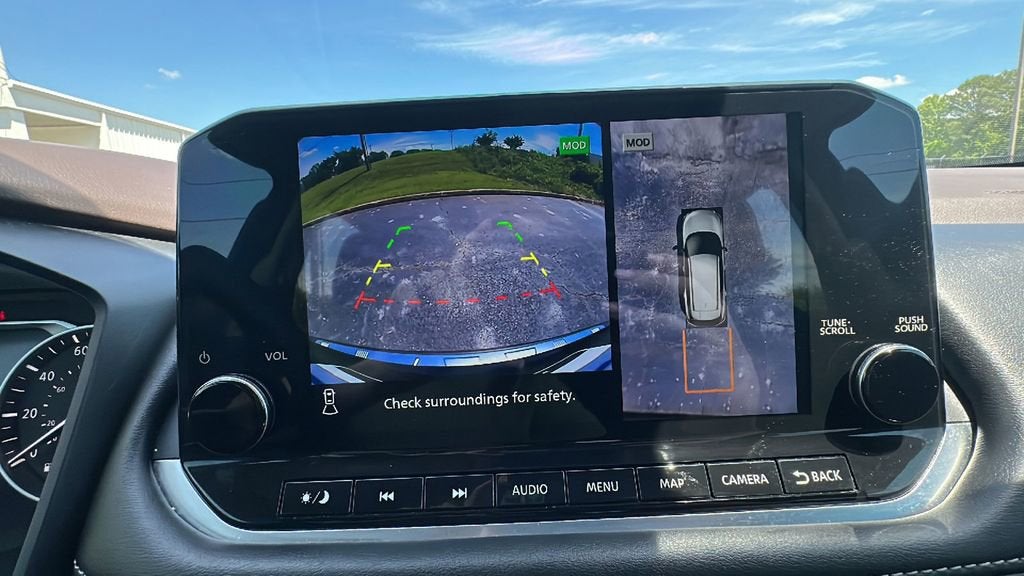 This 2023 Nissan Rogue is equipped with SL Premium Package (Bose Premium Audio System, Front, Side & Rear Sonar, Motion Activated Power Liftgate, ProPILOT Assist w/Navi-link, Radio: AM/FM NissanConnect w/Navigation, Rear Door Sunshades, Traffic Sign Recognition, and Tri-Zone HVAC), AWD, 19 Aluminum Alloy Wheels, 4-Wheel Disc Brakes, 5.604 Axle Ratio, 6 Speakers, ABS brakes, Air Conditioning, Alloy wheels, AM/FM Radio, AM/FM radio: SiriusXM, Auto High-beam Headlights, Auto-dimming Rear-View mirror, Automatic temperature control, Black Splash Guards (Set of 4), Brake assist, Bumpers: body-color, Chrome Rear Bumper Protector, Delay-off headlights, Driver door bin, Driver vanity mirror, Dual front impact airbags, Dual front side impact airbags, Electronic Stability Control, Emergency communication system: NissanConnect Services, Four wheel independent suspension, Front anti-roll bar, Front Bucket Seats, Front Center Armrest, Front dual zone A/C, Front reading lights, Fully automatic headlights, Heated door mirrors, Heated Front Bucket Seats, Heated front seats, Heated steering wheel, Illuminated entry, Knee airbag, Leather steering wheel, Leather-Appointed Seat Trim, Low tire pressure warning, Memory seat, NissanConnect featuring Apple CarPlay and Android Auto, Occupant sensing airbag, Outside temperature display, Overhead airbag, Overhead console, Panic alarm, Passenger door bin, Passenger vanity mirror, Power door mirrors, Power driver seat, Power Liftgate, Power moonroof, Power passenger seat, Power steering, Power windows, Radio data system, Rear anti-roll bar, Rear Parking Sensors, Rear reading lights, Rear seat center armrest, Rear side impact airbag, Rear window defroster, Rear window wiper, Remote keyless entry, Security system, Speed control, Speed-Sensitive Wipers, Split folding rear seat, Spoiler, Steering wheel mounted audio controls, Tachometer, Telescoping steering wheel, Tilt steering wheel, Traction control, Trip computer, Turn signal indicator mirrors, and Variably intermittent wipers.