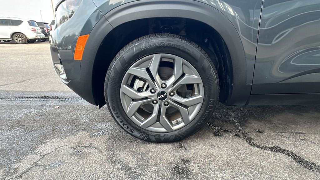 This 2024 Kia Seltos is equipped with Navy Interior Color Package, Navigation System, 4-Wheel Disc Brakes, 6 Speakers, 6.052 Axle Ratio, ABS brakes, Air Conditioning, Alloy wheels, AM/FM radio: SiriusXM, Apple CarPlay & Android Auto, Auto High-beam Headlights, Automatic temperature control, Brake assist, Bumpers: body-color, Carpet Floor Mats, Cloth & Sofino Premium Leatherette Seat Trim, Delay-off headlights, Driver door bin, Driver vanity mirror, Dual front impact airbags, Dual front side impact airbags, Electronic Stability Control, Emergency communication system: 911 Connect, Exterior Parking Camera Rear, Four wheel independent suspension, Front anti-roll bar, Front Bucket Seats, Front Center Armrest, Front fog lights, Front reading lights, Fully automatic headlights, Heated door mirrors, Heated Front Bucket Seats, Heated front seats, Illuminated entry, Leather Shift Knob, Leather steering wheel, Low tire pressure warning, Occupant sensing airbag, Outside temperature display, Overhead airbag, Overhead console, Panic alarm, Passenger door bin, Passenger vanity mirror, Power door mirrors, Power steering, Power windows, Radio: AM/FM/HD/Satellite Display System w/Navigation, Rear seat center armrest, Rear window defroster, Rear window wiper, Remote keyless entry, Security system, Speed control, Speed-sensing steering, Split folding rear seat, Spoiler, Steering wheel mounted audio controls, Tachometer, Telescoping steering wheel, Tilt steering wheel, Traction control, Trip computer, Turn signal indicator mirrors, Variably intermittent wipers, and Wheels: 17 Alloy w/Dark Gray Finish.