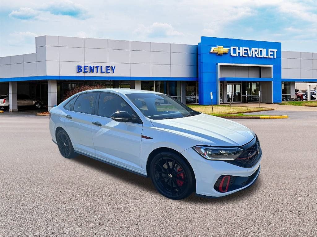 This 2024 Volkswagen Jetta GLI is equipped with 4-Wheel Disc Brakes, 6 Speakers, ABS brakes, Active Blind Spot Monitor, Adaptive suspension, Air Conditioning, Alloy wheels, AM/FM radio: SiriusXM with 360L, Auto High-beam Headlights, Auto-dimming Rear-View mirror, Automatic temperature control, Brake assist, Bumpers: body-color, Cloth Seating Surfaces, Delay-off headlights, Driver door bin, Driver vanity mirror, Dual front impact airbags, Dual front side impact airbags, Electronic Stability Control, Emergency communication system: VW Car-Net Safe & Secure 5-year, Exterior Parking Camera Rear, Four wheel independent suspension, Front anti-roll bar, Front Bucket Seats, Front Center Armrest, Front dual zone A/C, Front reading lights, Fully automatic headlights, Heated door mirrors, Heated Front Seats, Heated front seats, Illuminated entry, Leather Shift Knob, Leather steering wheel, Low tire pressure warning, Occupant sensing airbag, Outside temperature display, Overhead airbag, Panic alarm, Passenger door bin, Passenger vanity mirror, Power door mirrors, Power steering, Power windows, Radio data system, Radio: MIB3 Composition Media w/8 Touchscreen, Rain sensing wipers, Rear anti-roll bar, Rear reading lights, Rear seat center armrest, Rear window defroster, Remote keyless entry, Security system, Speed control, Speed-sensing steering, Split folding rear seat, Spoiler, Sport steering wheel, Steering wheel mounted audio controls, Tachometer, Telescoping steering wheel, Tilt steering wheel, Traction control, Trip computer, Turn signal indicator mirrors, Variably intermittent wipers, and Wheels: 18 Black Painted Alloy.